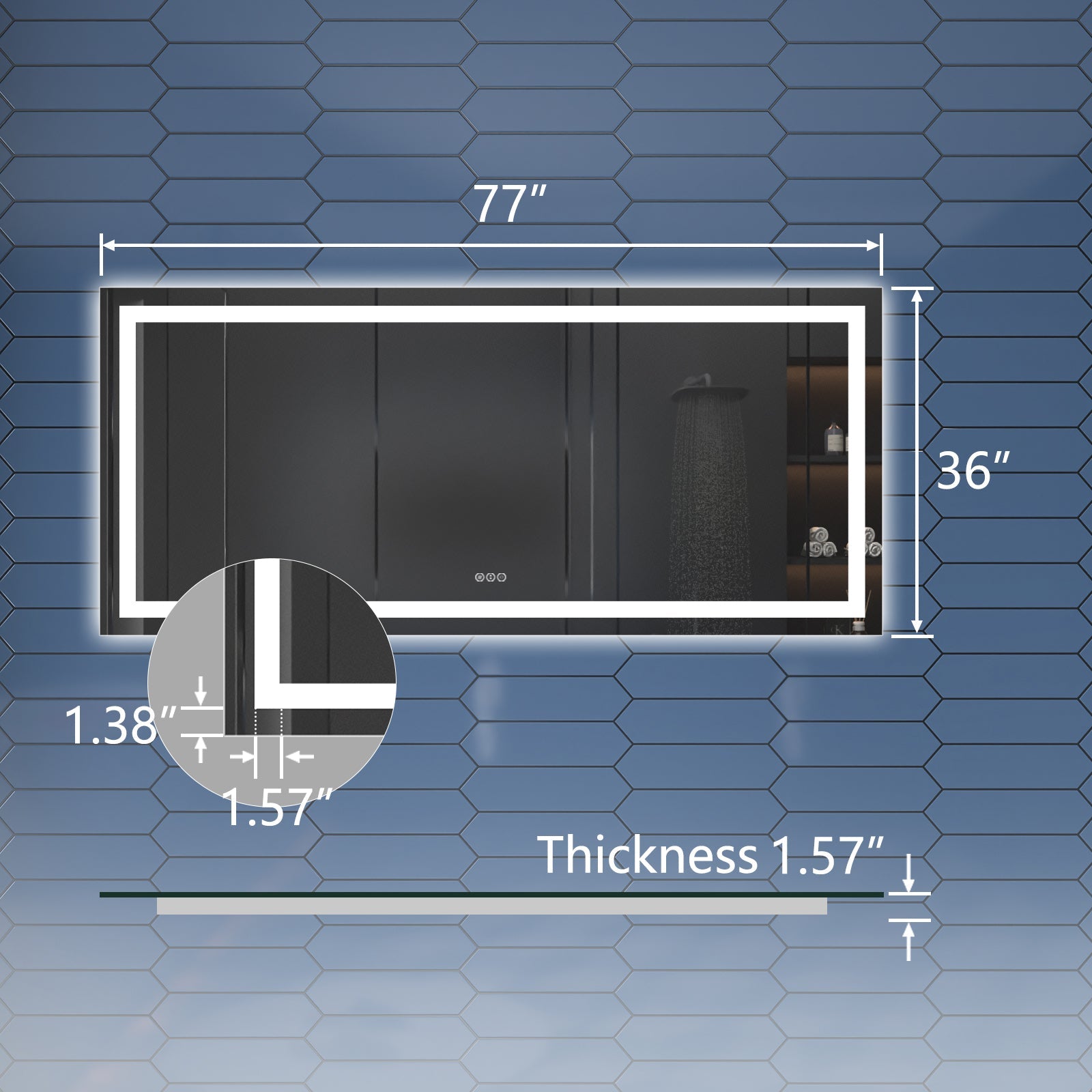 Apex 77" W x 36" H LED Bathroom Large Light Led Mirror,Anti Fog,Dimmable,Dual Lighting Mode,Tempered Glass