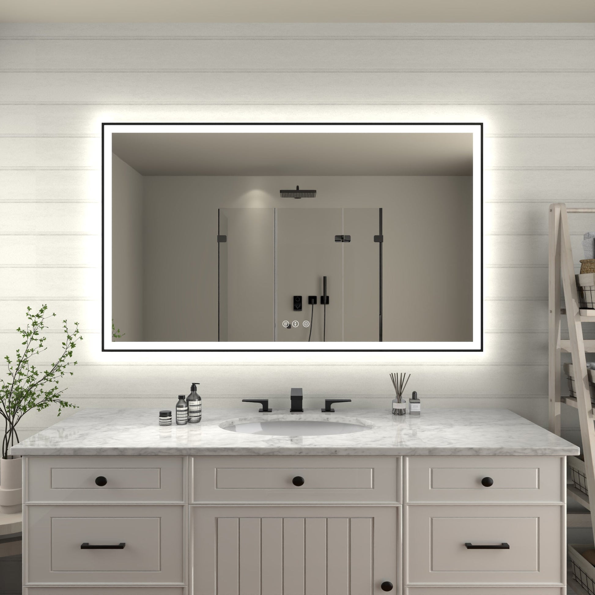 - 【Vanity Mirror with Defogging System】With anti-fog function, our bathroom mirrors can quickly remove the water vapor on the mirror surface and maintain a clear and transparent state. No need to wipe the mirror after bathing. Free your hands. Anti-fog feature will auto off after one hour.