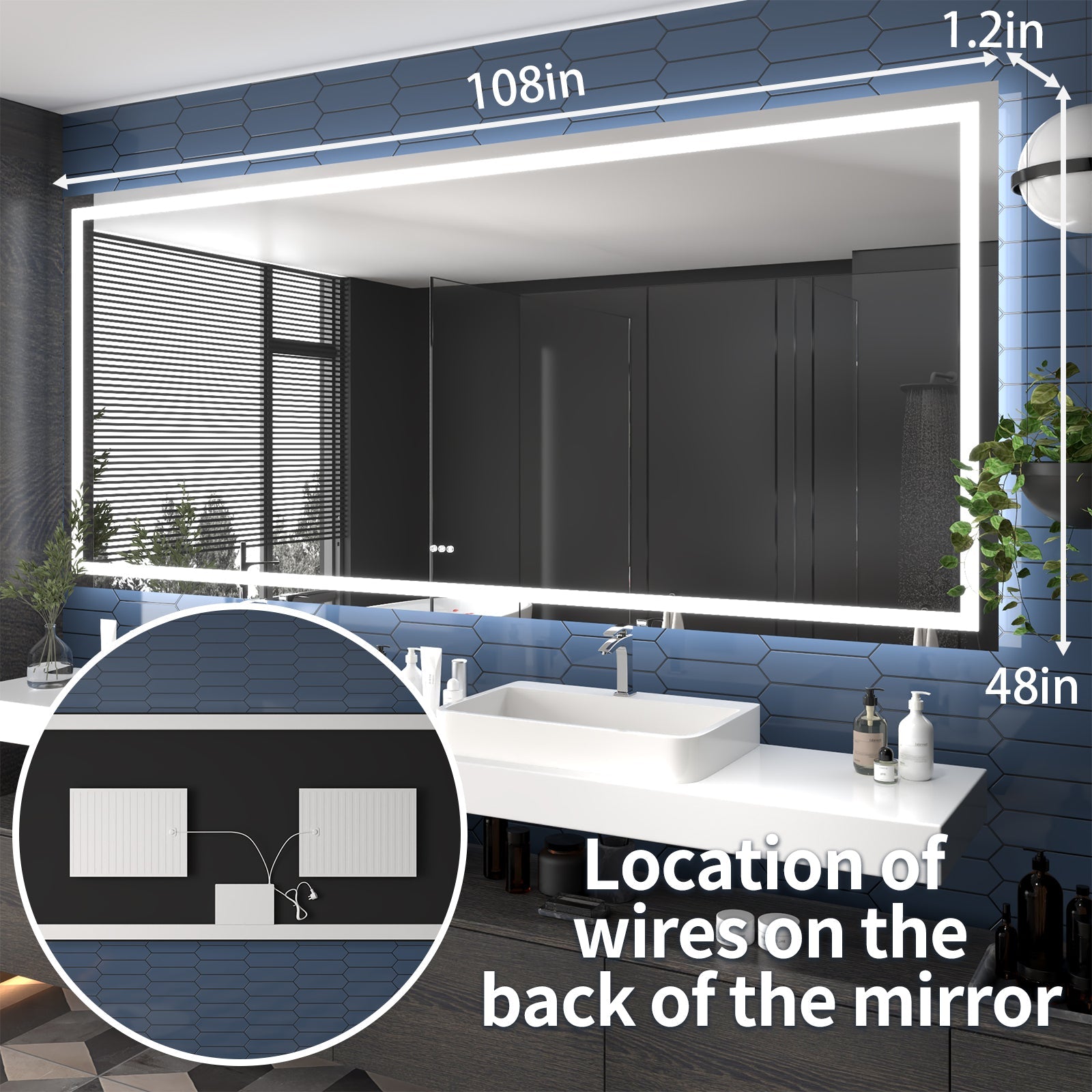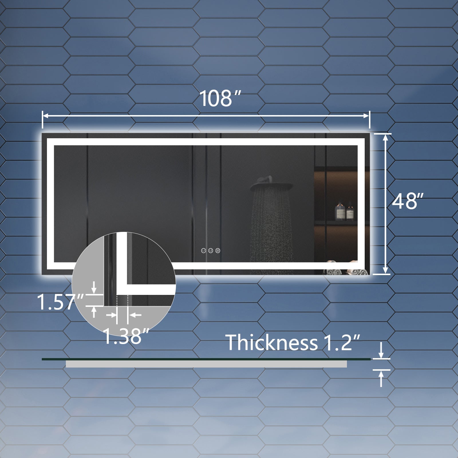 Apex-T 108" W x 48" H Lighted Bathroom Large Light Led Mirror,Anti Fog,Dimmable,Three Lighting Modes