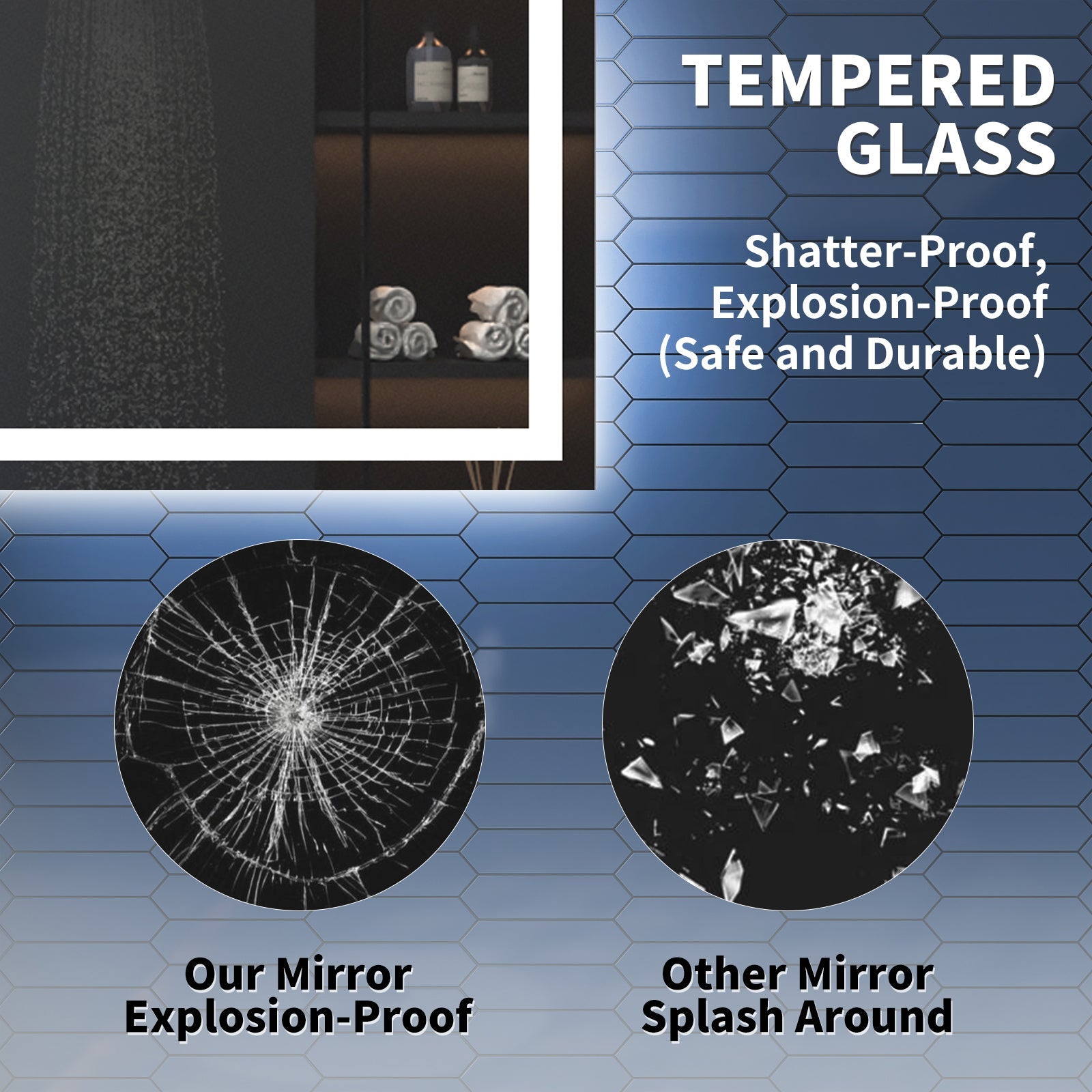 Dimmable LED Lighting: The LED bathroom mirror is equipped with a touch-sensitive button for dimming. By holding the power button for 2-3 seconds, you can adjust the brightness from 10% to 100%. The mirror remembers your last brightness setting, eliminating the need for constant adjustments.?