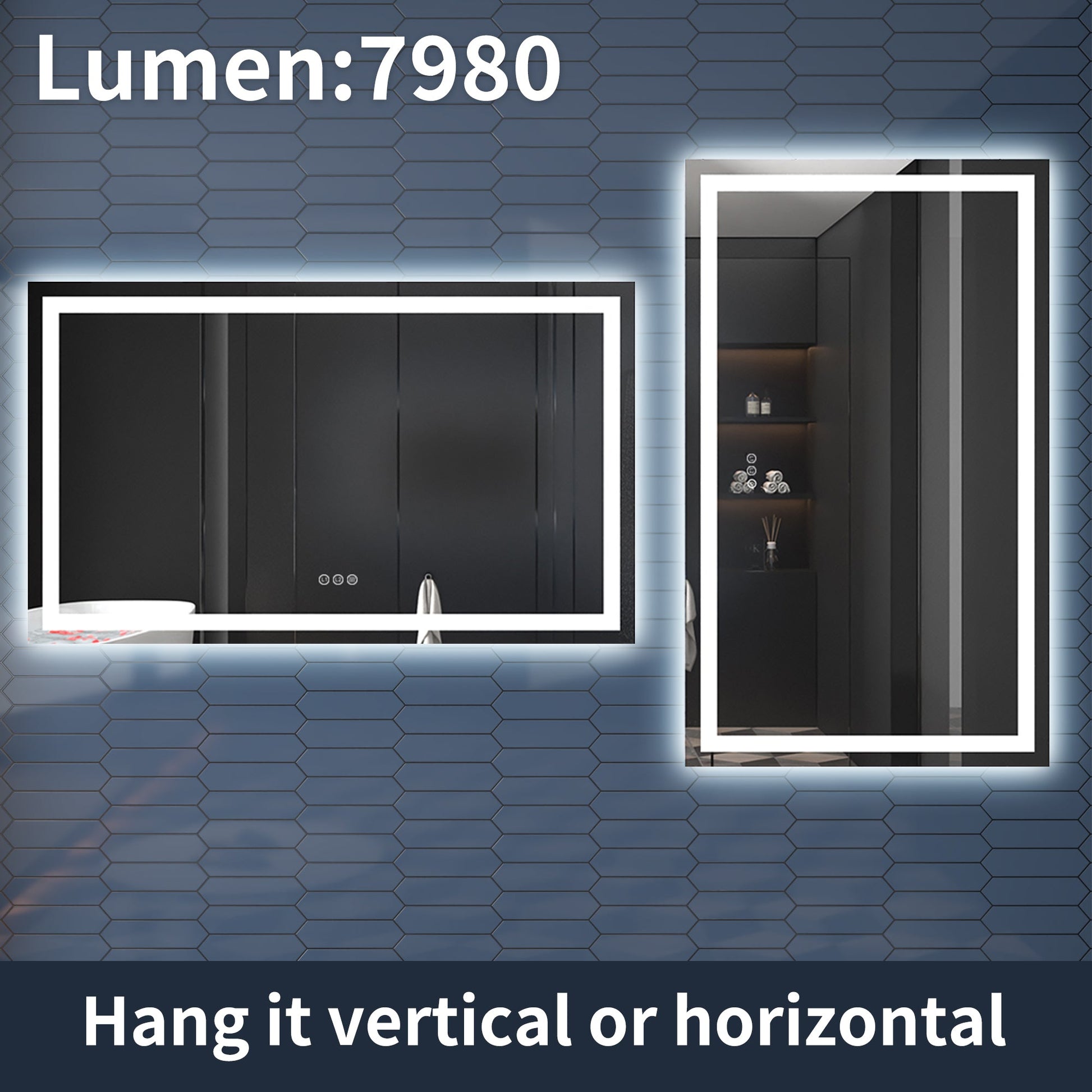 Equipped with two LED strip lights, the lighted bathroom mirror provides double the illumination from both the front and back.