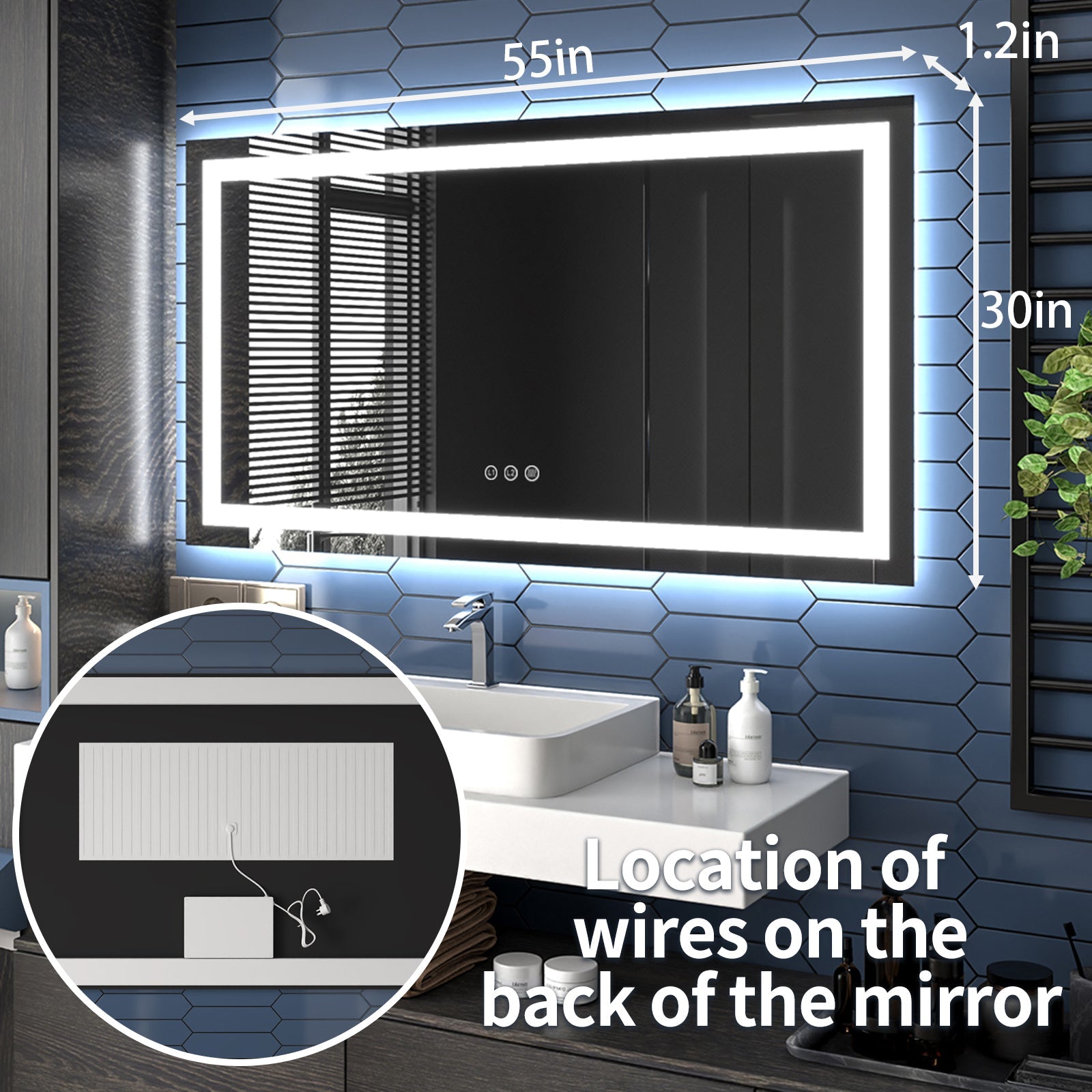 Anti-Fog Functionality: The integrated defogger ensures that the LED vanity mirror remains clean and free from fog. The anti-fog feature is controlled by a separate button, promoting safety and energy efficiency, allowing you to activate or deactivate it as needed.