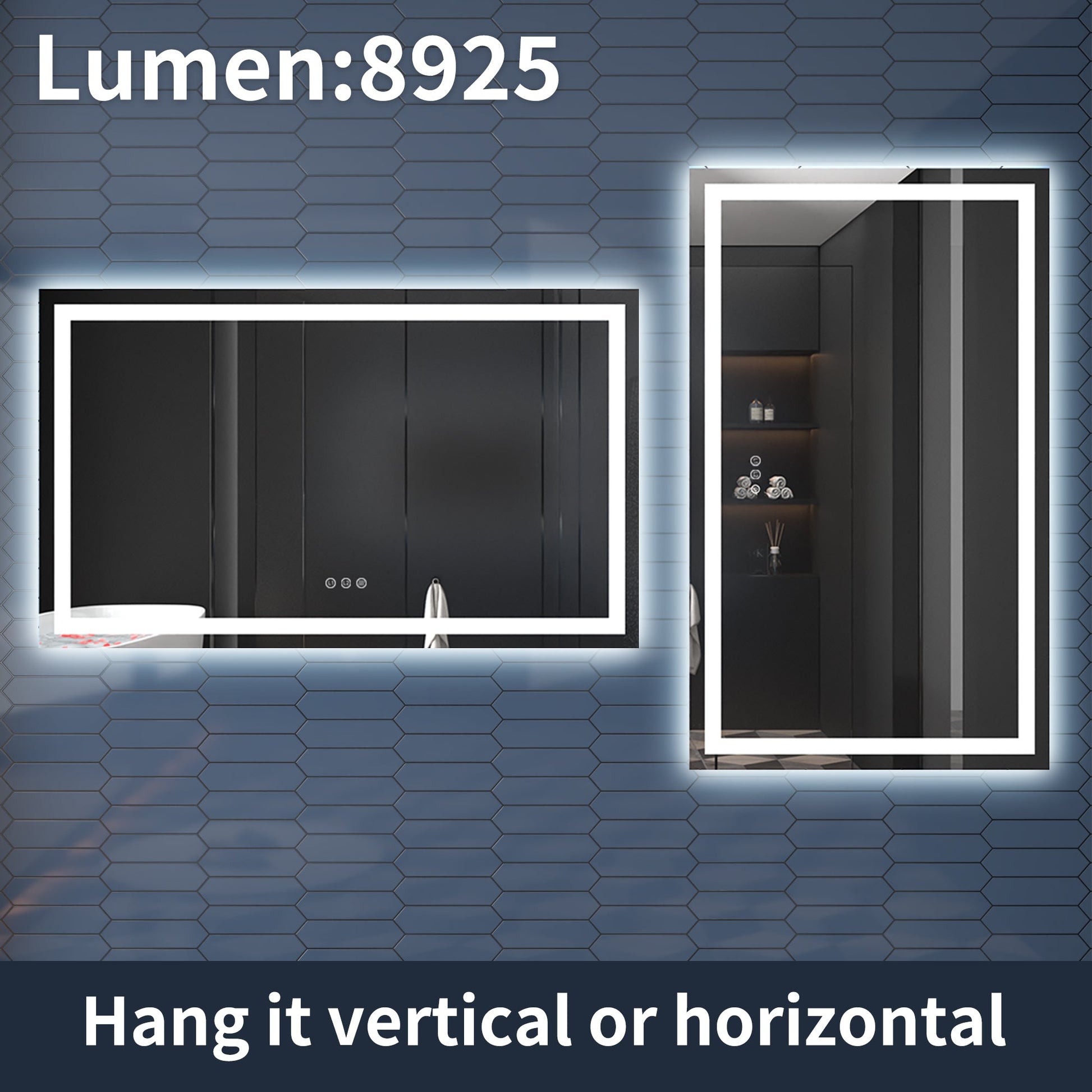 Equipped with two LED strip lights, the lighted bathroom mirror provides double the illumination from both the front and back.
