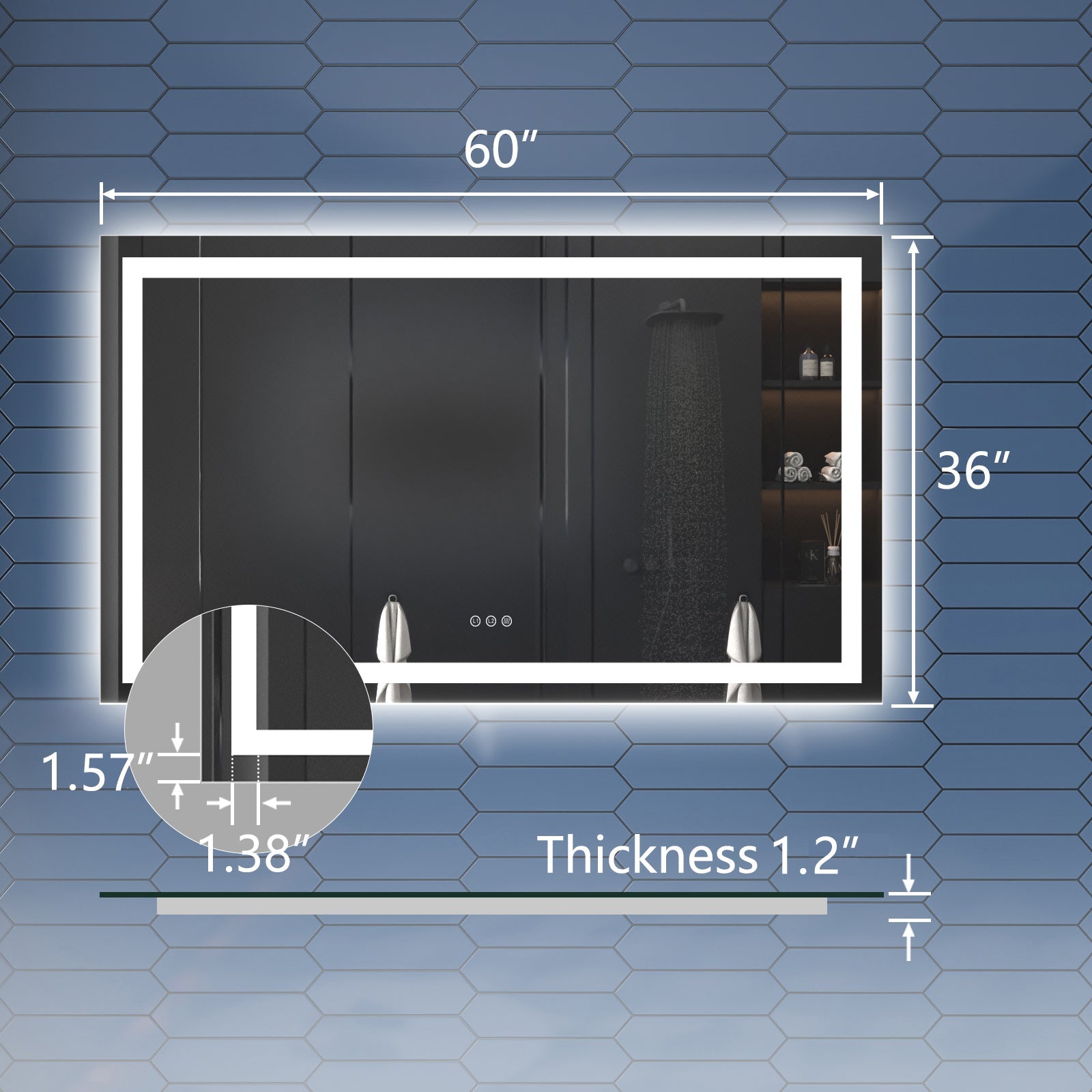 Apex-T 60" W x 36" H Lighted Bathroom Large Light Led Mirror,Anti Fog,Dimmable,Three Lighting Modes