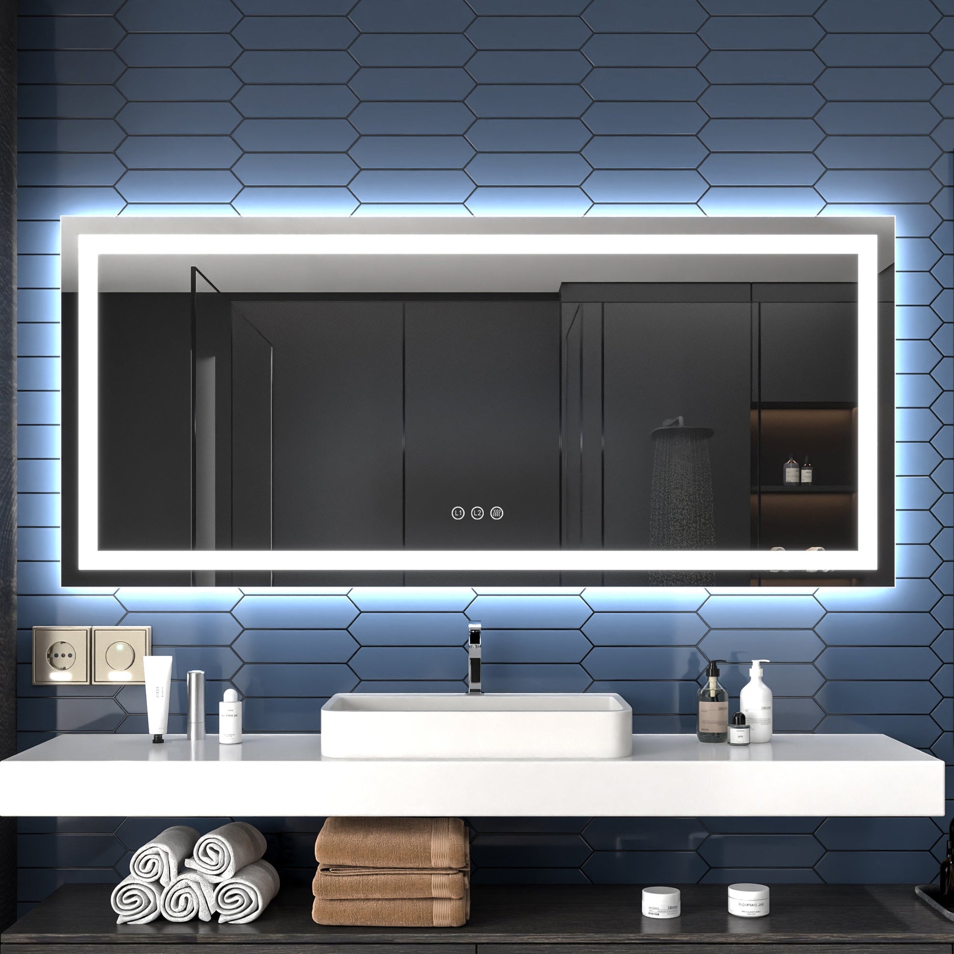 Anti-Fog Functionality: The integrated defogger ensures that the LED vanity mirror remains clean and free from fog. The anti-fog feature is controlled by a separate button, promoting safety and energy efficiency, allowing you to activate or deactivate it as needed.