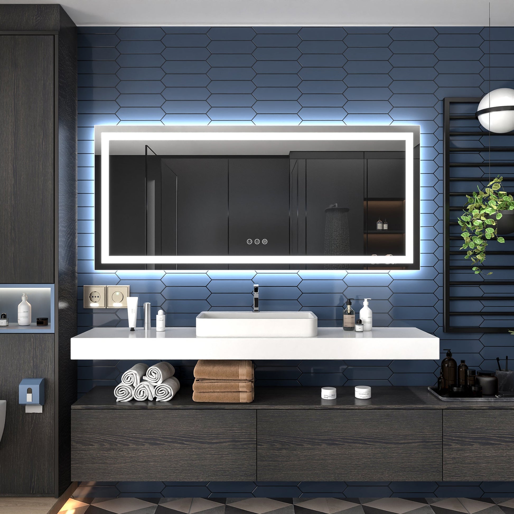 The innovative and sophisticated integration of lighting within the mirror enhances both its functionality and aesthetic appeal in your home. Featuring a built-in defogger, there is no need for constant application of fog-free sprays.