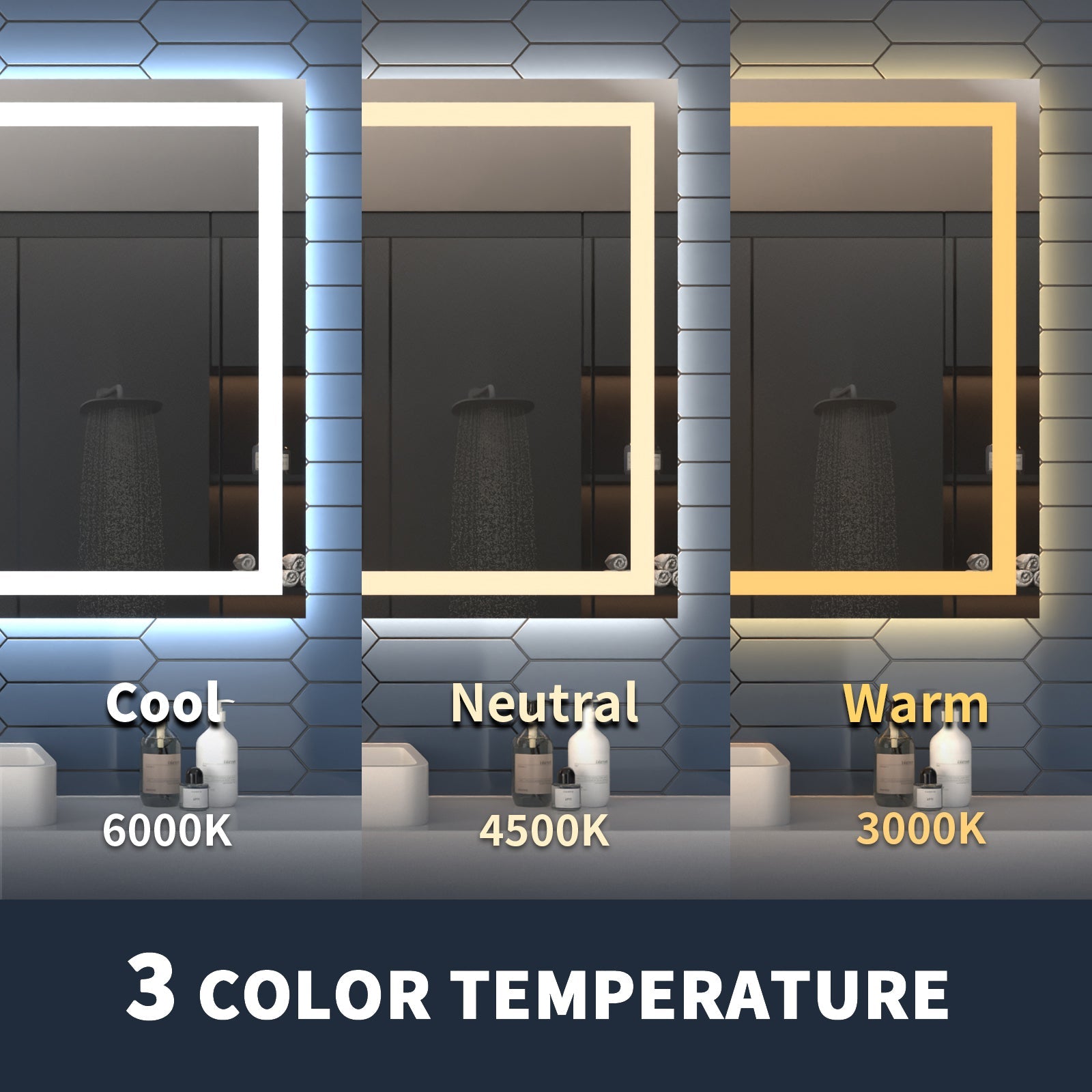 - Adjustable Color Temperature: With three color temperature settings ranging from 3000k to 6000k, a simple touch of the button allows you to switch between cold and warm light options