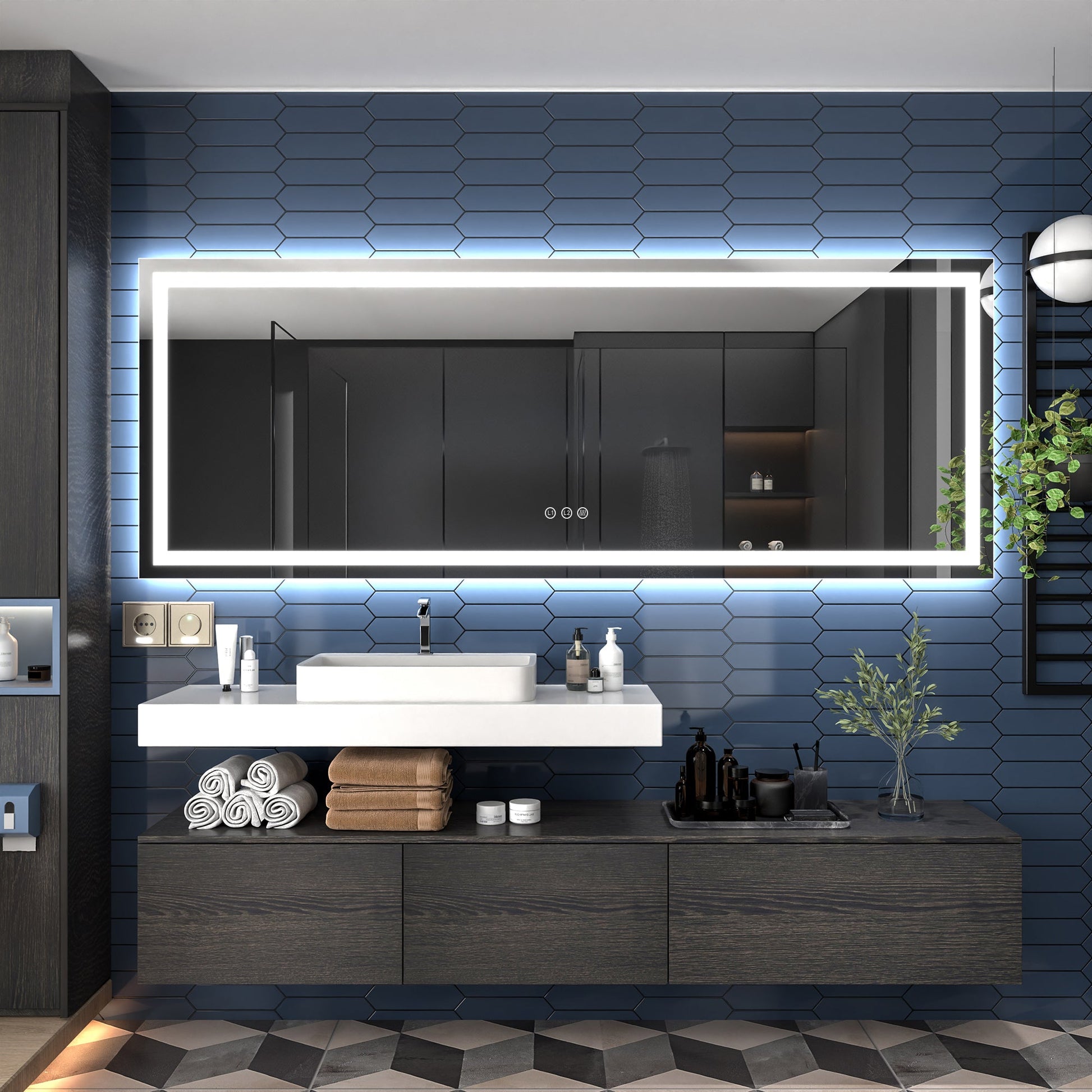 Apex-T 96" W x 36" H Lighted Bathroom Large Light Led Mirror,Anti Fog,Dimmable,Three Lighting Modes