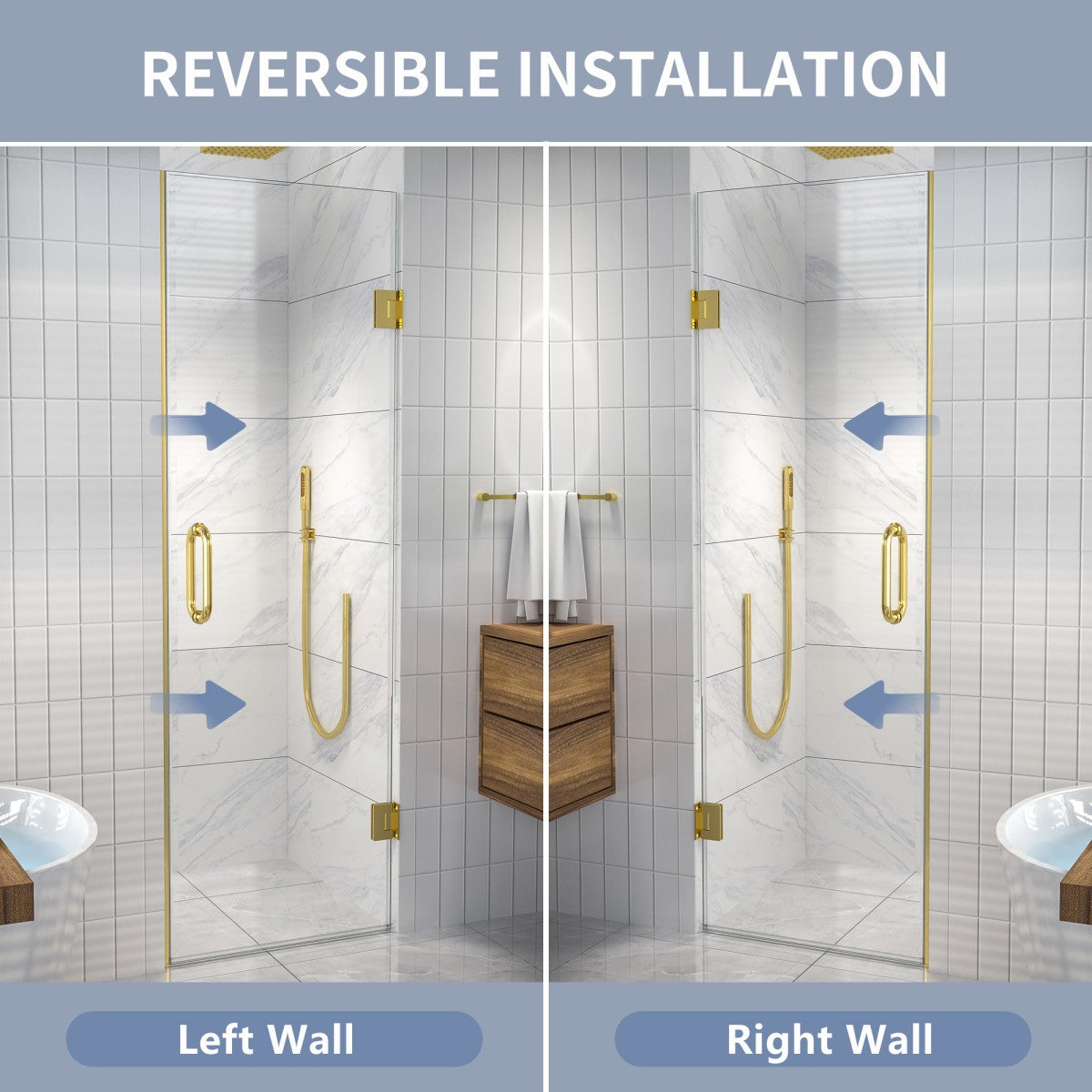 Designed for flexibility, this shower door can be installed to open from either the left or right side, catering to various bathroom layouts and personal preferences.