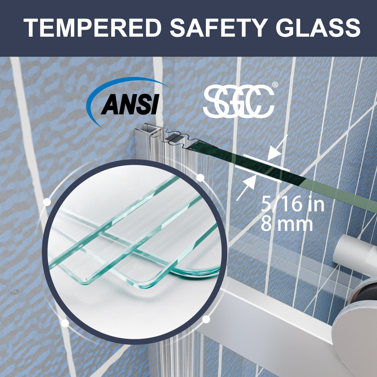 Premium Quality: Made with 3/8 inch (8mm) clear tempered glass, certified to ANSI Z97.1 and SGCC standards for durability and safety.