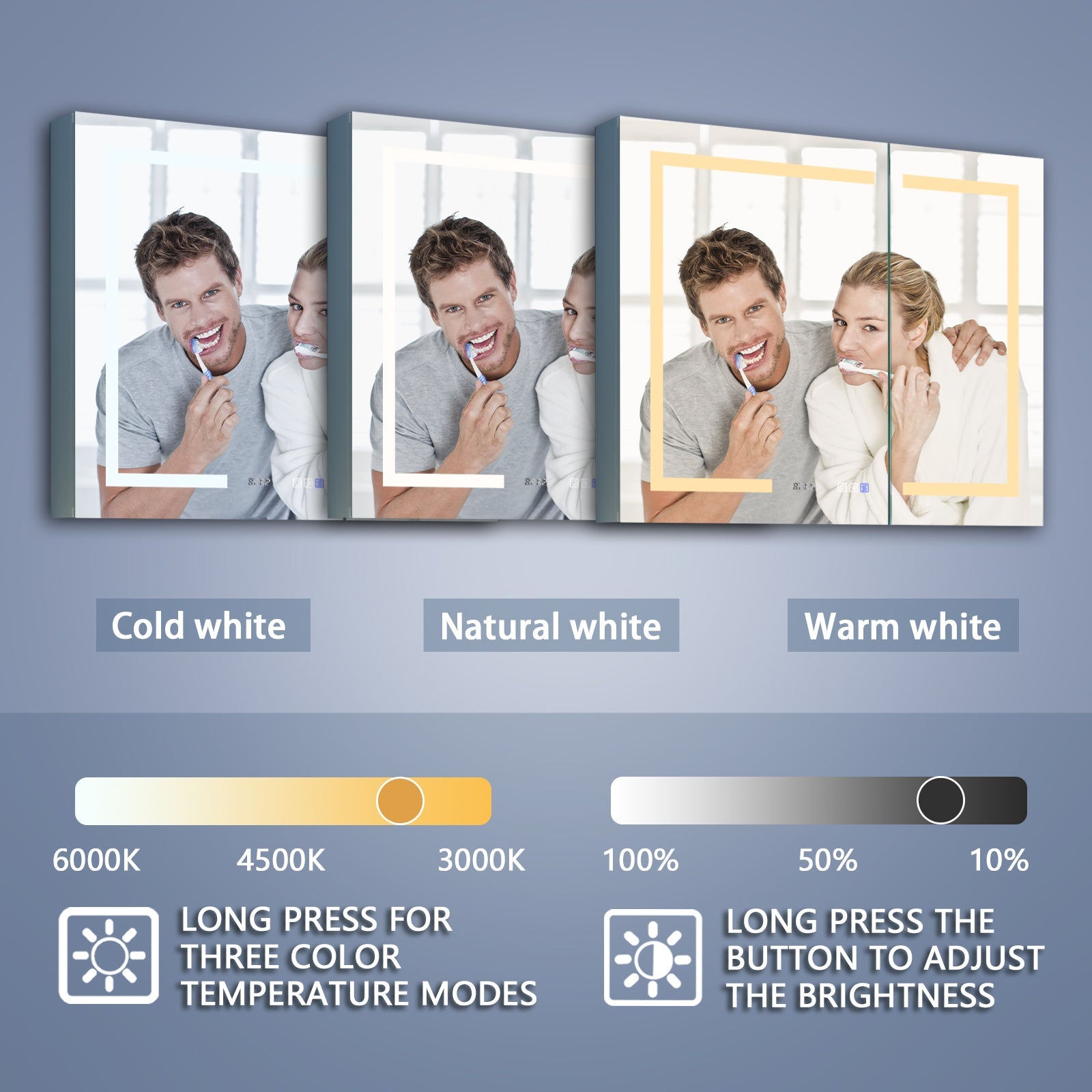 Boost-M1 36" W x 30" H LED Lighted Bathroom Medicine Cabinet with Mirror Recessed or Surface Mounted LED Medicine Cabinet