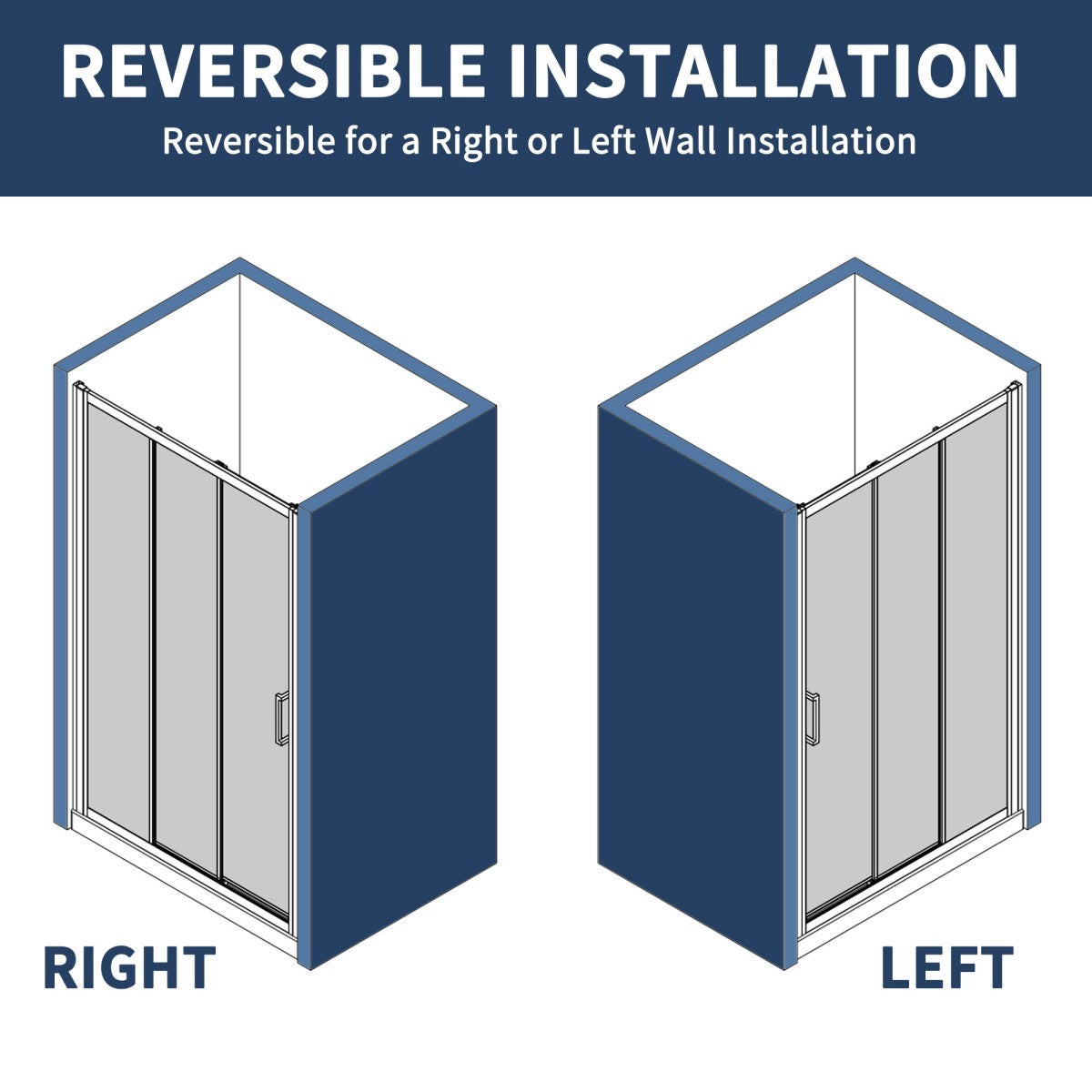 - Two sliding panels + one fixed pane create a wider walkthrough than standard 2-panel doors, offering better accessibility even in compact bathrooms or narrow layouts.