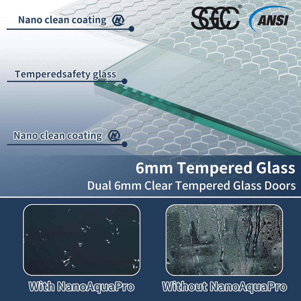 - Crystal-clear, impact-safe glass with a protective hydrophobic coating that repels water and soap ― stays clean with a simple wipe.